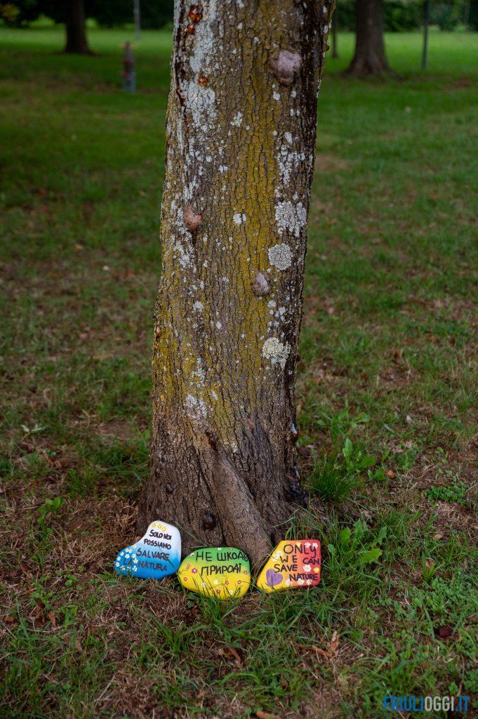 “Proteggi la natura, ama Buttrio, solo noi possiamo salvare l’ambiente”: così recitano le “pietre parlanti” che i bambini del paese hanno disseminato in punti cruciali del territorio – visibili dai fruitori degli spazi pubblici, dove spesso si nota l’abbandono indiscriminato di rifiuti – per sensibilizzare residenti e passanti sulle tematiche ecologiche. Sorpresi e incuriositi, molti cittadini hanno scoperto per caso, passeggiando, il sasso colorato con il messaggio lanciato dai più piccoli: rispettiamo la natura.