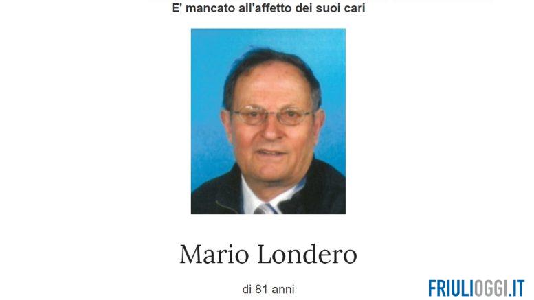 E’ mancato all’affetto dei suoi cari all’età di 81 anni Mario Londero. Ne danno il triste annuncio la moglie Maria, il figlio Michele, la nuora Federica, le adorate nipoti Valentina, Veronica e Vittoria unitamente ai parenti tutti.