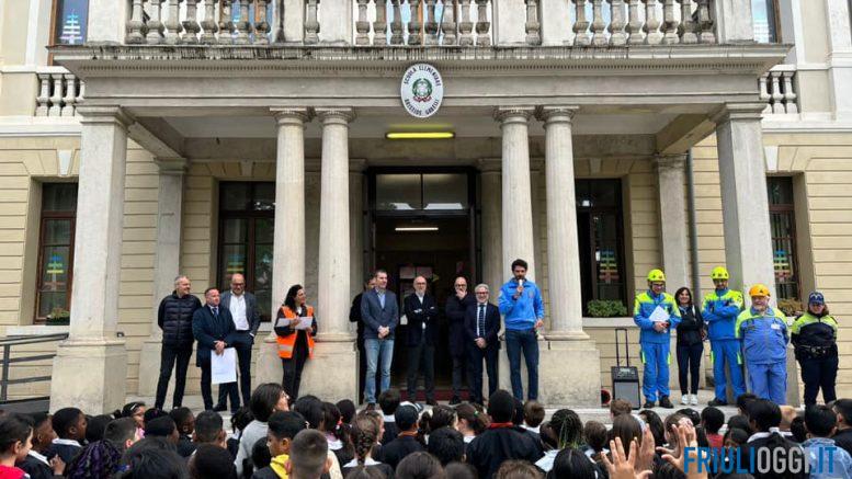 La campanella suona tre volte e i bambini escono in ordinata fila indiana per riversarsi nei punti di ritrovo all’esterno: non è una normale ricreazione, ma una prova di evacuazione nell’ambito dell’esercitazione antisismica cui oggi hanno partecipato 4mila alunni delle scuole di Pordenone, in una iniziativa ideata dalla Protezione Civile.