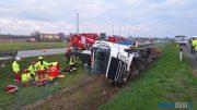 Incidente sulla A4, camion finisce fuori strada e si ribalta: autista ferito