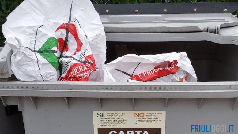 Sono stati appesi martedì e oggi sono finiti nel cassonetto. Ad Aiello del Friuli, infatti, qualcuno ha strappato i manifesti elettorali del Pd e li ha gettati nei rifiuti.