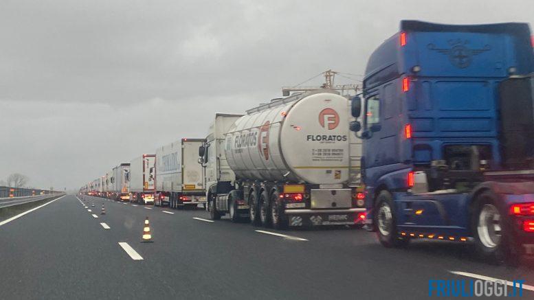 Per facilitare le operazioni dei mezzi antineve, tra Udine sud ed il Confine di Stato verso nord e tra il Confine di Stato e Pontebba verso la A4 Torino-Trieste, Autostrade per l’Italia ha istituito il divieto temporaneo di transito ai camion con peso superiore alle 7,5 tonnellate, fermi tra Udine sud e Udine nord verso Tarvisio. Le nevicate hanno poi perso d’intensità dopo qualche ora ed è stato tolto il blocco.