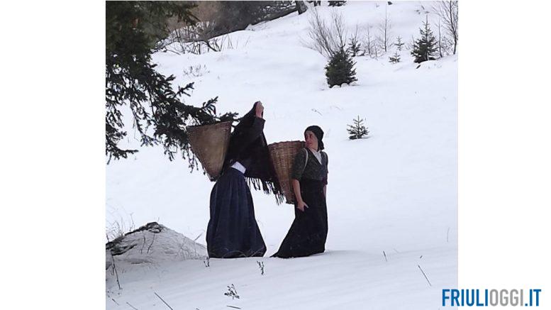 La neve c’è, le gerle e i vestiti di un tempo anche e così Timau -Tischlbong è diventato per alcuni giorni un set: quello del film che racconterà la storia delle portatrici carniche.
