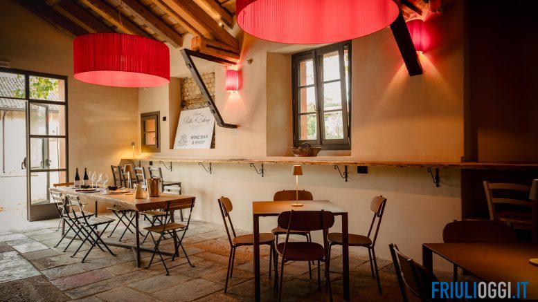 Dagli interni si intravedono i locali della cantina dell’azienda vinicola a cui è collegata da una porta in ferro e vetro. Sarà possibile assaggiare i vini della cantina Ritter de Záhony, accompagnati da una selezione di prodotti regionali tra cui i formaggi del caseificio Del Ben di Porcia e i salumi delle aziende In Cortile di Sottoselva e Prosciuttificio Bagatto di San Daniele.
