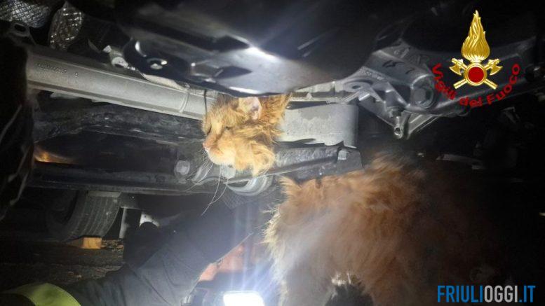 Il gatto era rimasto incastrato nel vano motore dell’auto.