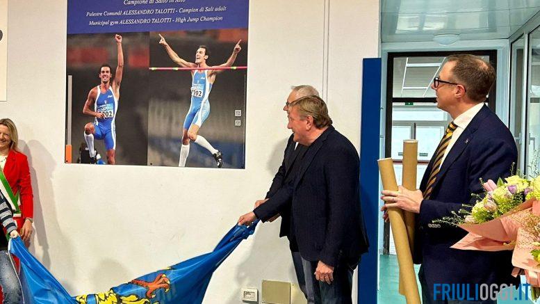 “Alessandro Talotti rappresenta un esempio virtuoso e un punto di riferimento per tutti i nostri ragazzi grazie ai suoi successi sportivi, ma soprattutto per i suoi valori e il suo comportamento sociale”. Con queste parole il presidente del Consiglio regionale del Fvg, Mauro Bordin, ha ricordato insieme al collega consigliere Massimiliano Pozzo il campione friulano di salto in alto, scomparso nel maggio 2021 all’età di 40 anni, venerdì durante la cerimonia di intitolazione della palestra comunale di via Mariuzza a Campoformido.