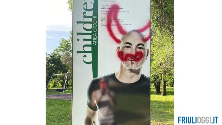 Un atto vile e disgustoso quello compiuto nei giorni scorsi all’area giochi ‘Children’ di Campoformido. Alcuni vandali infatti, probabilmente con una bomboletta spray, si sono divertiti ad imbrattare il pannello in memoria del grande artista friulano Robert Miles, scomparso sei anni fa e al quale l’anno scorso è stata dedicata la zona verde della ‘boschete furlane”.