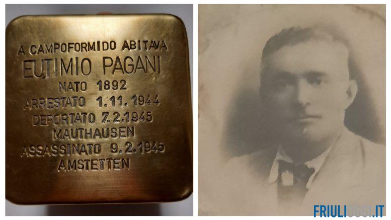 Anche a Campoformido sarà posata una Pietra d’inciampo (Stolperstein, in tedesco). “Con questa iniziativa l’Amministrazione comunale celebra la Giornata della Memoria ricordando Eutimio Pagani” spiegano il sindaco di Campoformido Erika Furlani e il vicesindaco Christian Romanini, delegato alla cultura “Sarà la prima: Eutimio Pagani è una delle vittime tra i nostri concittadini deportati e morti in campo di concentramento”.