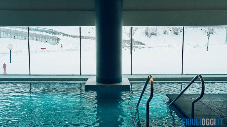 Il nuovo padiglione è dotato di una grande vasca centrale da venti metri, con due ali in cui trovano spazio la spiaggia con i giochi d’acqua per i bimbi più piccoli e il river per il divertimento dei più grandi. E’ inoltre disponibile uno scivolo di 40 metri per provare il brivido della velocità. La chicca è una nuova vasca esterna con postazioni idromassaggio in cui rilassarsi ammirando le bellezze delle montagne della Carnia.