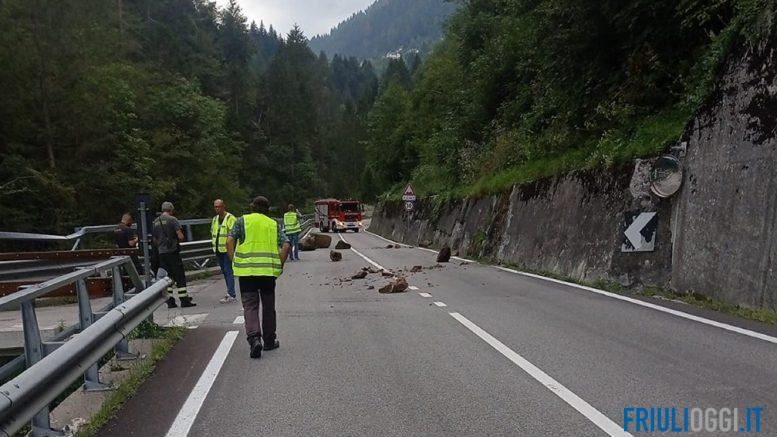 La strada regionale 465 che va da Cercivento a Ravascletto è stata chiusa al traffico a causa di alcuni massi di grosse dimensioni caduti sulla careggiata all’altezza della località Ponte Gjai, nel territorio comunale di Cercivento.