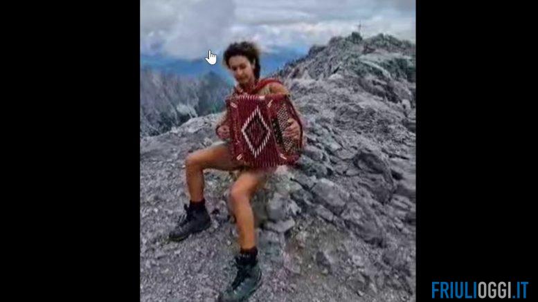 Dalla cima del Monte Coglians, improvvisamente si diffondono le note di una fisarmonica: una sorta di improvvisato, ma suggestivo concerto in alta quota grazie alla veneta Sabrina Salvestrin che sul monte più alto del Friuli è salita portando in spalla il suo strumento.