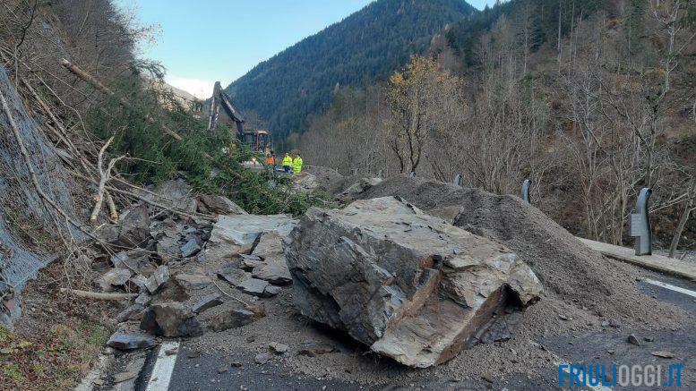 E’ stata riaperta ieri sera a senso unico alternato con semaforo la strada regionale 355 dopo la caduta di materiale roccioso dal versante a monte della carreggiata al km 23+500, a Forni Avoltri. Le reti a protezione della strada ed installate sul versante hanno svolto con efficacia il proprio compito bloccando anche la caduta di un masso, a 25 metri di altezza.