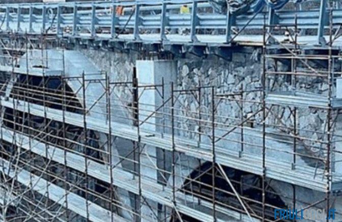 I lavori sul ponte tra Forni di Sopra e di Sotto.