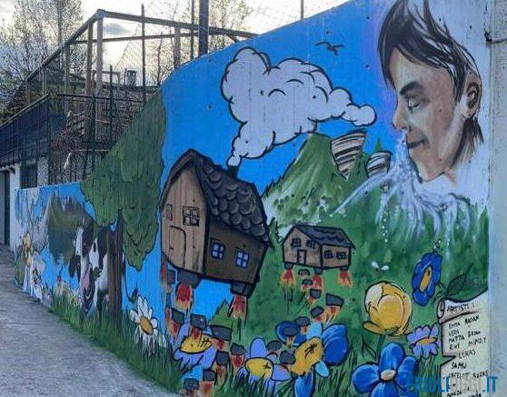 Forni di Sopra e Forni di Sotto uniti dal murales.