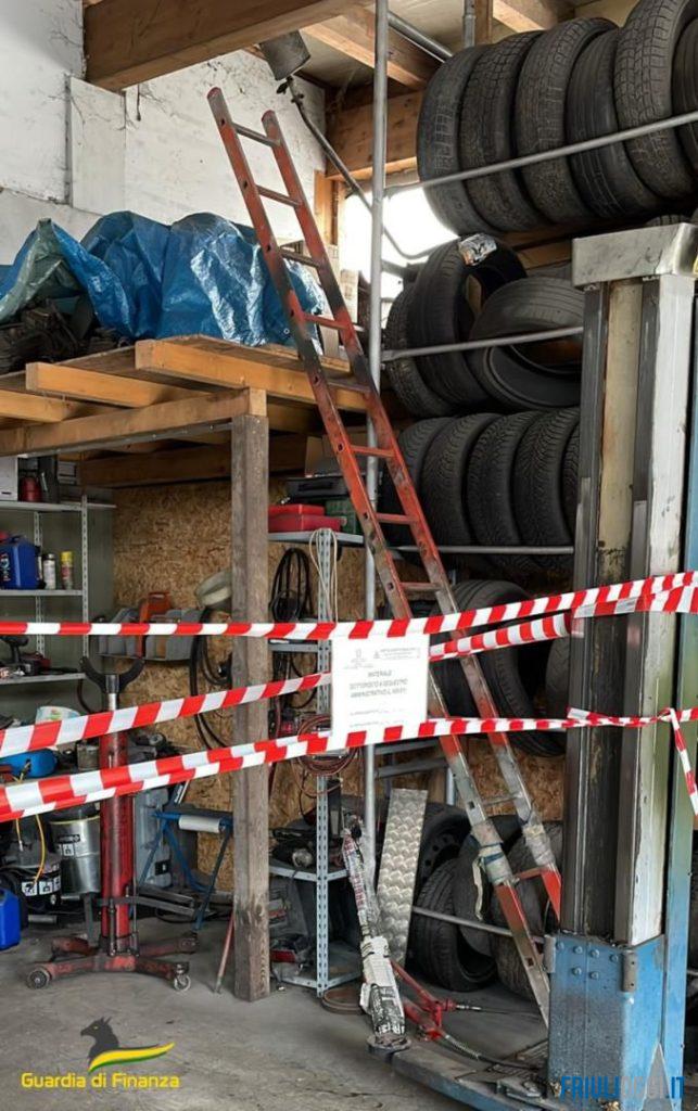 Sulla base delle indagini svolte, il Sostituto Procuratore della Repubblica di Udine, dott.ssa Maria Caterina Pace, ha emesso apposito decreto di ispezione dell’area, rendendo possibile meglio accertare quanto era già stato rilevato nel corso di precedenti sopralluoghi esterni. In particolare, gli operanti constatavano la presenza di numerosi rifiuti, tra cui batterie al piombo esauste e un ingente deposito di pneumatici fuori uso.