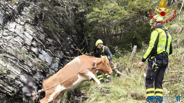 La mucca era caduta in un dirupo, a Sauris.