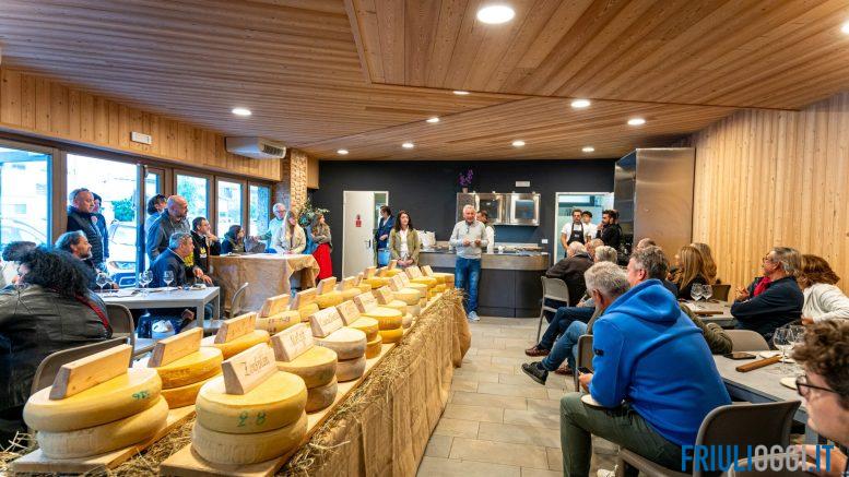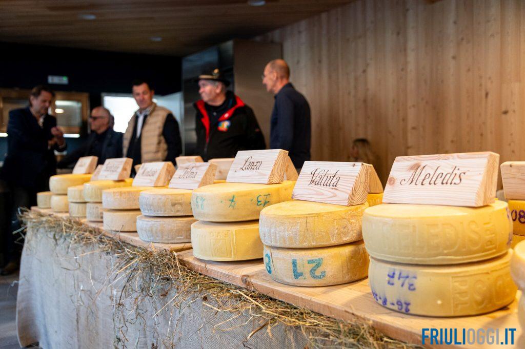 Due i momenti dell’evento. Fin dalla mattina nell’Ort di Sior Matie, salotto all’aperto del paese, è stata esposta la miglior produzione casearia della montagna friulana della stagione 2024: qui i partecipanti hanno potuto scegliere quali formaggi assaggiare e farsi tentare dalle forme in esposizione e vendita.