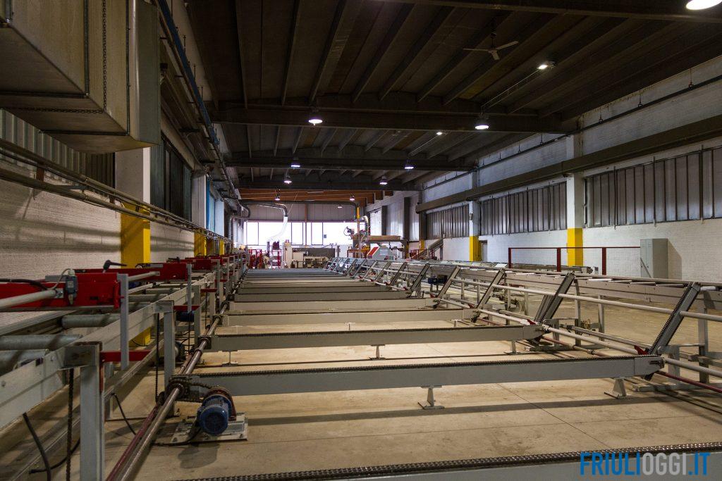 “Le travi che produciamo di grande e grandissima dimensione, che possono arrivare fino a 40 metri di lunghezza, prima della tinteggiatura devono essere ritoccate per eliminare i piccoli difetti di lavorazione e imperfezioni dovuti a nodi e sacche di resina – spiega il presidente Marino De Santa – lavorazioni che ora vengono eseguite manualmente con grande impiego di tempo”.