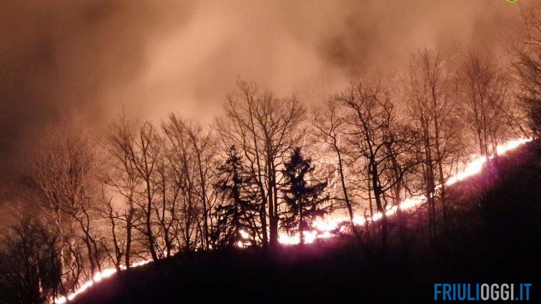 In corso la bonifica dell’incendio a Tolmezzo, in località monte Diverdalce.