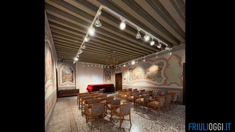 Si inserisce in questo contesto il progetto “Intervento di adeguamento degli impianti di illuminazione per le sale museali” realizzato grazie al Bando restauro del 2024 promosso dalla Fondazione Friuli. Il finanziamento ha permesso di concludere il potenziamento dell’impianto di illuminazione delle sale collocate al primo e secondo piano di Palazzo Campeis, nella sostituzione dei binari e dei faretti, al fine di contribuire, così, all’efficientamento energetico, che passa anche dall’uso di tecnologie a LED di ultima generazione, capaci di garantire una migliore resa luminosa con un minore consumo energetico, valorizzando al contempo gli ambienti espositivi.