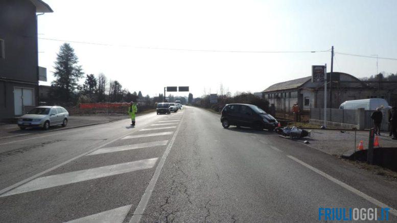Per cause in corso di accertamento da parte delle forze dell’ordine (attivati i Carabinieri della Compagnia di Udine) mentre viaggiava in sella a uno scooter si è scontrata con una vettura ed è rovinata malamente a terra.
