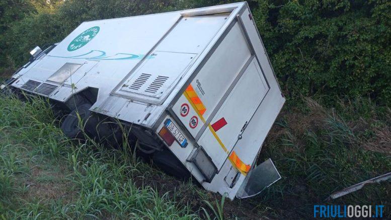 Forse voleva evitare una vettura, ma poi in un attimo dopo era nel fosso. L’incidente è avvenuto verso le 7, lungo la strada regionale 353 al km 23, vicino alla località Paradiso, all’incrocio tra Pocenia e Castions di strada. Ad essere coinvolto è un camion del pesce, e dentro l’abitacolo c’erano due persone che si erano messi in strada per andare a imbastire il banco del pesce al mercato.
