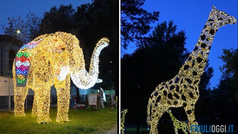 A Natale Cervignano del Friuli si trasformerà in un vero e proprio mondo incantato. In Piazza Indipendenza faranno la loro comparsa oltre 25 animali luminosi a grandezza naturale: elefanti, giraffe, tigri, leoni, zebre, scimmie, pavoni, ippopotami, fenicotteri rosa, farfalle e perfino papere.