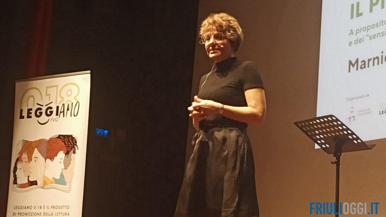 Dopo la “Ricreazione tra i libri” nel foyer alle 18 è stata Marnie Campagnaro a salire sul palco per tenere l’intervento “Lieve sul mondo il piedino posò – A proposito di una storia, di una traccia e dei ‘sensi’ della lettura”. Introdotta da Viviana Urban, dell’Associazione italiana biblioteche – Sezione Friuli Venezia Giulia, l’analisi della professoressa Campagnaro è partita dalla celeberrima fiaba “La piccola fiammiferaia” di Andersen, coinvolgendo il pubblico in un’attività che ha scomposto il testo riferendolo a diverse chiavi interpretative. Dalle parole più significative, quindi, si è risaliti alla bellezza narrativa, alla partecipazione emotiva suscitata, al simbolismo, alla interpretazione culturale e politico.