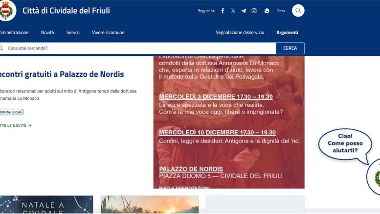 Cividale del Friuli è uno dei nove Comuni del Friuli Venezia Giulia che hanno aderito alla sperimentazione dei chatbot sviluppati da INSIEL. Il chatbot è un’assistente virtuale intelligente ed è già presente ed attivo sul portale istituzionale www.comune.cividale-del-friuli.ud.it.