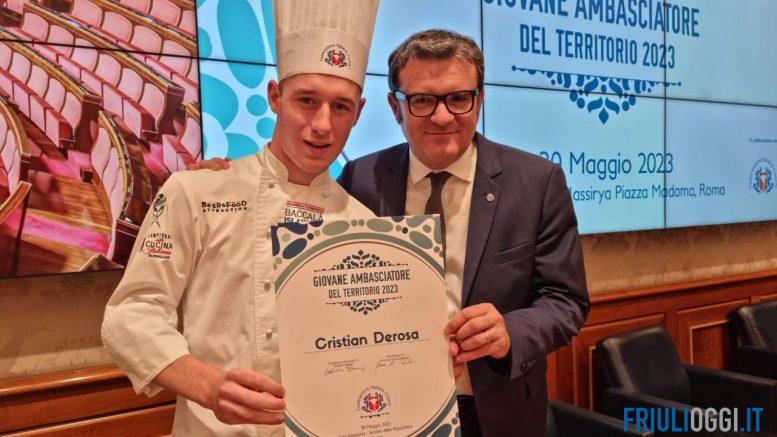 L’allievo del Centro di formazione Civiform Cristian Derosa del Friuli Venezia Giulia, già tra i migliori allievi nazionali ai Campionati di Rimini tra gli istituti alberghieri d’Italia, è stato nominato “Giovane ambasciatore del territorio 2023” al Senato nel corso di una cerimonia organizzata dalla Federazione Italiana Cuochi.