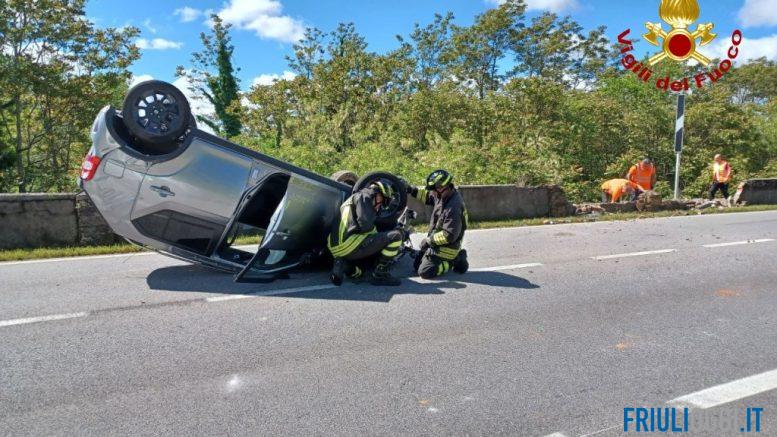 Per cause in corso di accertamento da parte delle forze dell’ordine (attivati per quanto le competenze carabinieri della Compagnia dei Cividale del Friuli), ha perso il controllo della vettura che stava conducendo e dopo aver colpito il muretto che separa la strada dalla linea ferroviaria ha terminato la sua corsa a ruote all’aria a qualche metro dal punto d’impatto. Nessun altro mezzo coinvolto.