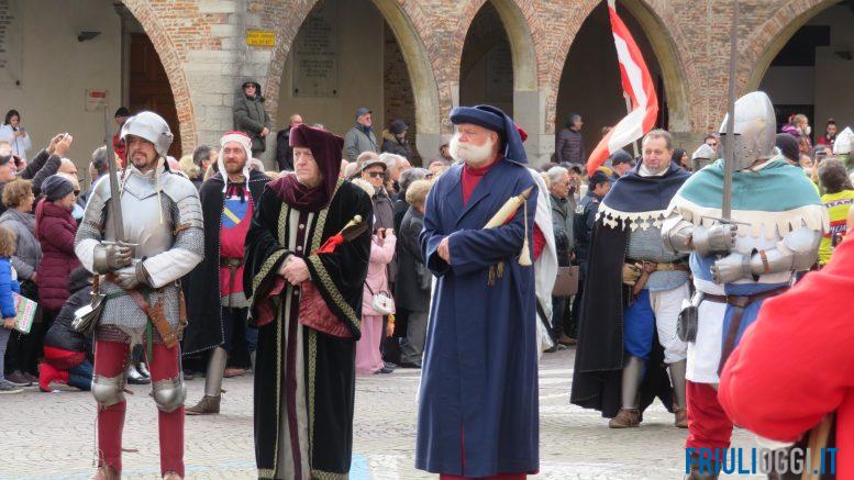 La comunità si preparerà ad accogliere il Patriarca sfilando in corteo dalla storica Porta di Ponte, corso Paolino d’Aquileia, piazza Duomo, Largo Boiani, piazza Foro Giulio Cesare, via Silvio Pellico, piazza Diaz e piazza Dante. Il Patriarca Marquardo entrerà da Porta San Pietro accompagnato dai Ministeriali Maggiori a cavallo e proseguirà lungo Via Silvio Pellico, Foro Giulio Cesare, Largo Boiani e piazza Duomo dove avrà inizio l’atteso cerimoniale in cui il Patriarca riceverà gli omaggi dei diversi rappresentanti della società dell’epoca, quali principi, nobili, agricoltori, castellani, maestri d’armi.