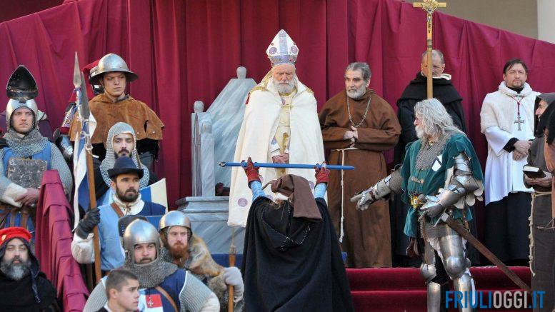 A conclusione della messa, come avviene ormai da oltre 30 anni (con uno stop negli ultimi due anni causa pandemia), centinaia di figuranti in costume storico rievocheranno l’entrata a Cividale di Marquardo von Randeck. La comunità accoglierà il Patriarca che entrerà da Porta San Pietro accompagnato dai Ministeriali Maggiori a cavallo, proseguendo lungo via Silvio Pellico, piazza Foro Giulio Cesare, Largo Boiani e piazza Duomo dove avrà inizio l’atteso cerimoniale in cui il Patriarca riceverà gli omaggi quale capo spirituale e temporale del territorio.