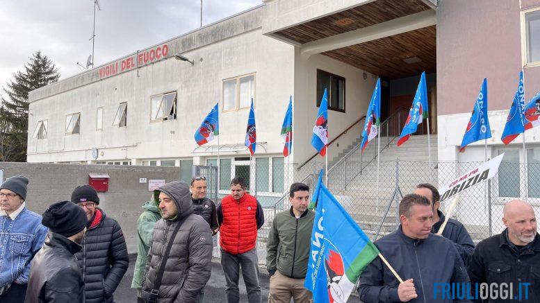 La protesta per la situazione del distaccamento dei vigili del fuoco di Cividale.