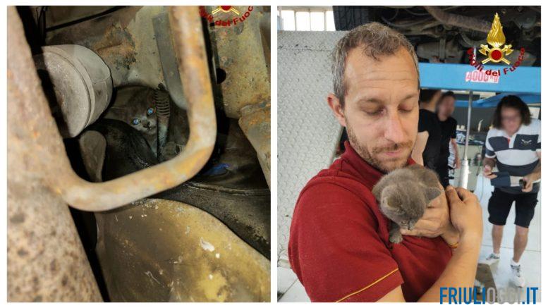 Sono servite 3 ore di lavoro da parte del personale dei Vigili del fuoco del distaccamento di Codroipo per liberare un gattino che era rimasto incastrato nel vano motore di un’autovettura.