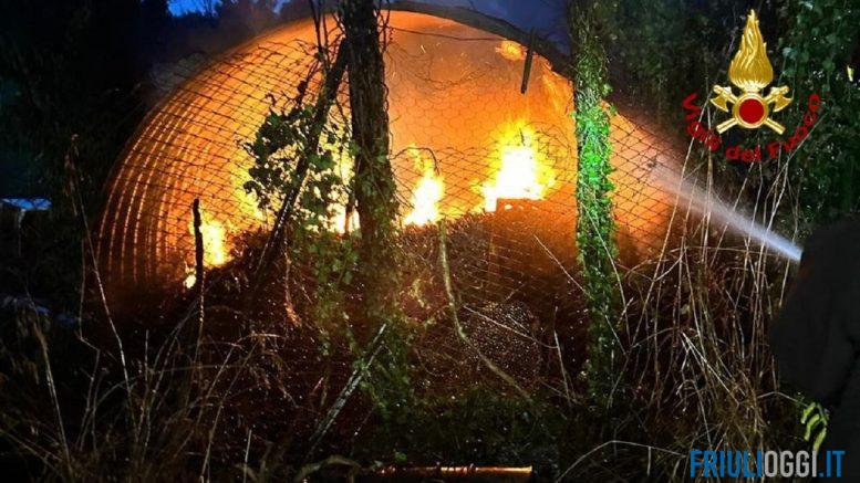 L’incendio ieri sera a Codroipo.