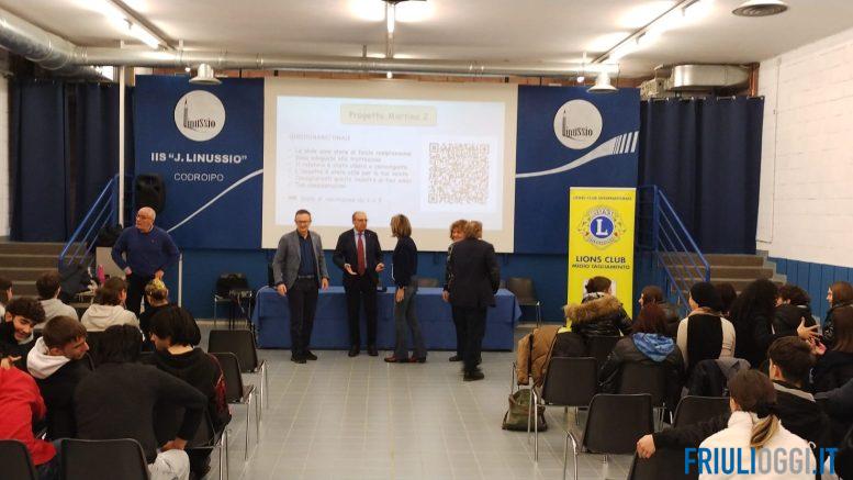 Come ha indicato in apertura dell’appuntamento la dirigente scolastica Ornella Michelizza questi momenti sono utili sia come vicinanza delle associazioni del territorio alla scuola e ancor di più perché sensibilizzano i giovani al tema del corretto stile di vita, spesso dato per scontato. Ha ricordato che ormai è l 4° anno consecutivo di collaborazione, e l’attenzione anche della scuola è aumentata. Il Presidente del Lions Club Medio Tagliamento Pierpaolo Trevisan e l’officer di Club del progetto Martina dott. Giovanni Moretti hanno illustrato l’attività dei Lions diretta a portare l’aiuto con energia ovunque sia necessario, nelle nostre comunità e in tutto il mondo, e raccontato delle diverse iniziative sociali e culturali che svolgono nel Codroipese e San Vitese a favore anche dei ragazzi.