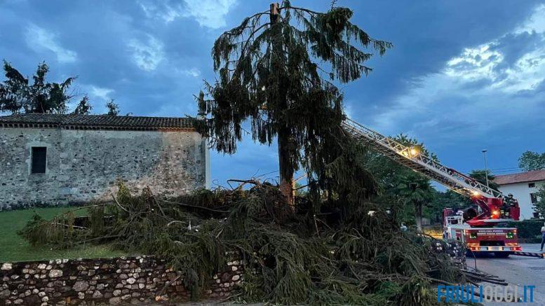 Erano all’incirca le ore 18 quando Luca Ovan, sindaco di Colloredo, assieme ad un membro referente della protezione civile, Maurizio Zampa, non hanno potuto fare a meno di notare il grande pericolo che quell’albero, dopo essere stato colpito da un violento fulmine, arrecava ai cittadini. La posizione strategica che lo vedeva nelle immediate vicinanze della chiesa di San Martino e della strada, infatti, ha fatto sì che venissero immediatamente allertati i vigili del fuoco di San Daniele e poi, in seguito, anche quelli di Udine, con l’utilizzo della scala mobile.