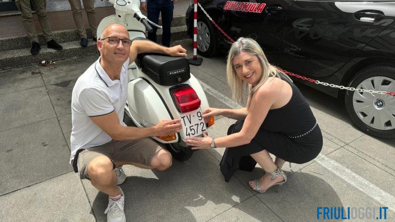 Prima consegna a Cordenons ( e seconda in regione) della targa storica originale TV094572, per una Vespa Piaggio P 125 X del 1980, immatricolata come veicolo di interesse storico e collezionistico iscritto nel registro storico Fmi. La consegna è avvenuta presso l’Agenzia pratiche auto che ne ha curato la pratica.