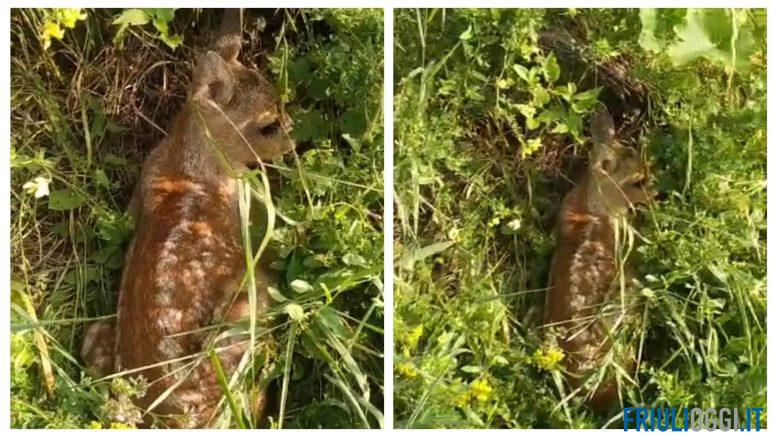 Affascinante incontro oggi tra i vigneti di Corno di Rosazzo: un cucciolo di cervo era nascosto tra l’erba alta, probabilmente in attesa della madre. L’esemplare apparentemente in buone condizioni è stato scoperto da un agricoltore impegnato nei campi. Poco dopo, forse anche spaventato dal rumore del trattore, il giovane esemplare è fuggito.