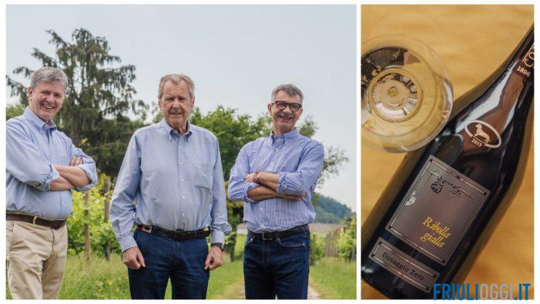 Lo spumante nasce da sole uve ribolla gialla e, dopo una prima fermentazione in acciaio e in barrique, il vino base riposa in grandi autoclavi orizzontali a cui segue un lento affinamento sur lies – per un periodo mai inferiore ai 30 cicli lunari – che porta il residuo zuccherino sotto i 3 g/l. Seguono dodici mesi di bottiglia per ottenere un’ottima Ribolla Gialla Spumante Dosaggio Zero. Nel calice si distingue grazie al colore giallo paglierino e al perlage fine e persistente, al naso invece spicca un bouquet floreale, fresco e agrumato, che si sviluppa su note fragranti di lievito e cipria. Il sorso è pieno, sapido, estremamente verticale e straordinariamente armonico nel suo lungo finale fruttato.