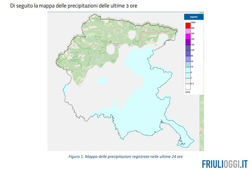 Prosegue anche per il pomeriggio di oggi, lunedì 24, l’allerta meteo per pioggia in buona parte del Friuli Venezia Giulia diramato dalla Protezione civile. Da segnalare come al momento i livelli dei principali corsi d’acqua risultano fortunatamente tutti sotto i livelli di guardia. Ma nelle prossime ore è previsto un ulteriore peggioramento, con un intensificarsi delle precipitazioni.