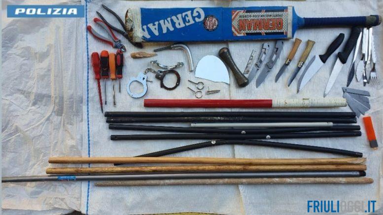 Bastoni, mazze, coltelli da cucina, lame di varia natura ed in generale numerosi strumenti atti ad offendere sono stati rinvenuti durante i controlli dei locali e delle stanze in uso ai minori stranieri ospiti della Casa dell’Immacolata di via Chisimaio e della Hannah House di Piazzale Cella a Udine.