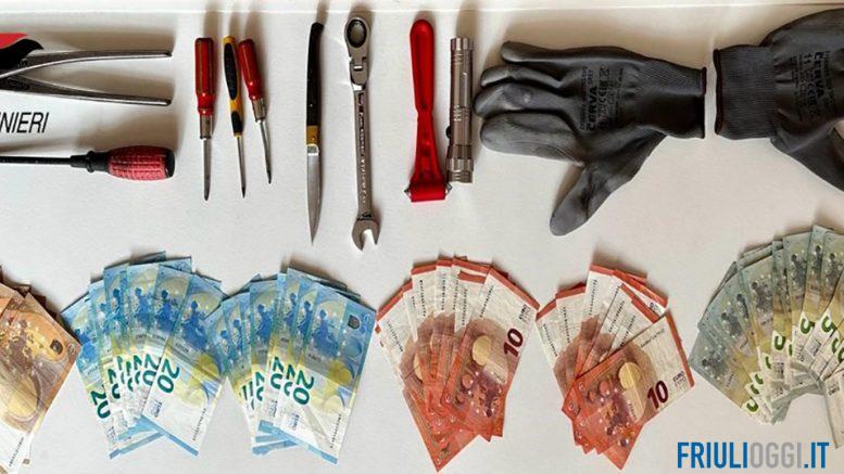 Le ricerche permettevano alcuni giorni dopo di rintracciarlo e controllarlo. L’attività di perquisizione consentiva di rinvenire e porre sotto sequestro vari cacciaviti, un martello frangivetro, un coltello a serramanico con apertura manuale con lama di 7 cm, guanti, nonché la somma di mille euro in banconote di piccolo taglio, di cui non sapeva giustificare il possesso. Sulla scorta degli elementi probatori acquisiti l’uomo veniva denunciato alla Procura della Repubblica presso il Tribunale di Trieste, per furto aggravato e porto abusivo di armi e oggetti atti ad offendere. Accertamenti sono in corso sul sospettato per furti analoghi commessi nello stesso periodo.