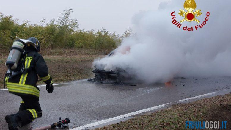 Paura a Porcia dove un’auto, condotta da un’ottantenne di Pasiano che stava percorrendo via Panigai in direzione Palse, ha preso improvvisamente fuoco. Sul posto sono intervenuti i Vigili del fuoco di Pordenone sono intervenuti con due automezzi.