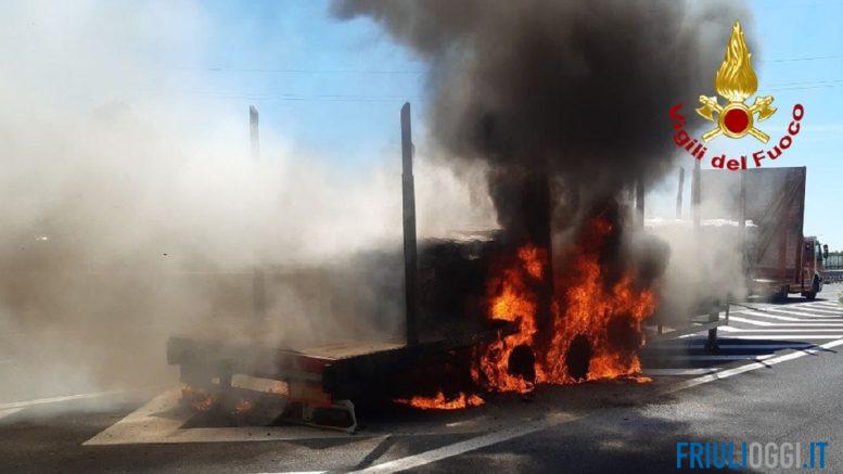 Il rogo è scoppiato all’altezza dell’uscita di Villesse. Sul posto i Vigili del fuoco del comando di Gorizia con una squadra e un’autobotte della sede centrale.