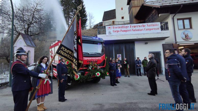 Alla cerimonia di consegna erano presenti il comandante dei pompieri volontari di Camporosso – Freiwillige Feuerwehr Saifnitz – Claudio Sorato, il sindaco di Tarvisio Renzo Zanette, e il parroco che ha benedetto il nuovo mezzo, Alan Iacoponi. Sono un’ottantina i volontari che fanno parte del corpo dei pompieri di Camporosso, una realtà nata nel 1898, quando ancora il territorio ricadeva nell’impero austro-ungarico. Il mezzo, finanziato dalla Protezione civile regionale con circa 250mila euro, va ad arricchire il parco macchine composto già da un fuoristrada e un furgone.