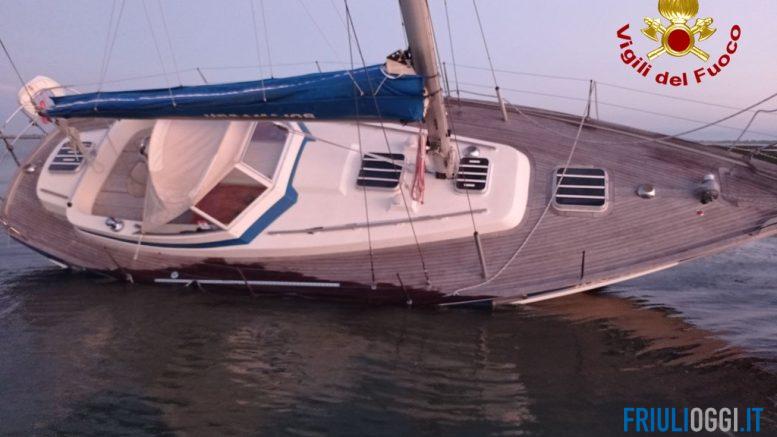 La barca si è incagliata a nel canale di uscita di Lignano.