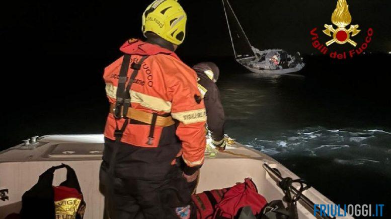 Intervento di soccorso nella notte nella laguna di Marano Lagunare, dove un’imbarcazione a vela di circa otto metri è rimasta incagliata su una secca esterna al canale navigabile. A bordo si trovavano tre persone straniere, poi tratte in salvo dai Vigili del fuoco.