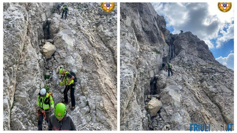 La stazione di Forni Avoltri del Soccorso Alpino assieme alla Guardia di Finanza e all’elicottero della Protezione Civile hanno tratto in salvo una ventunenne friulana che era rimasta “incrodata” (ovvero bloccata tra le rocce senza riuscire più a scendere né salire da quel punto) a margine del sentiero attrezzato Riccardo Spinotti (che si sviluppa sulle propaggini meridionali di un avancorpo del Monte Coglians), nel territorio di Forni Avoltri.